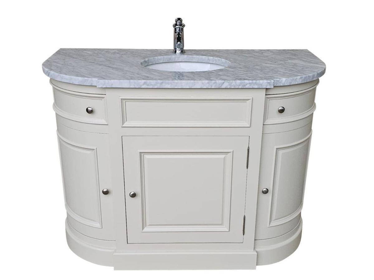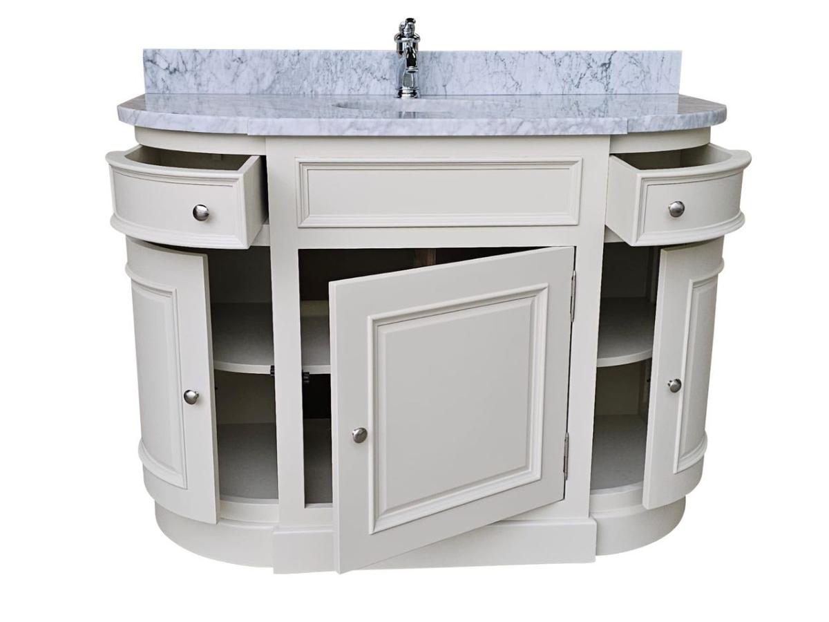 Meuble de Salle de Bain Arrondi – 3 Portes & 2 Tiroirs – Bois Massif - Style Classique Retro Chic